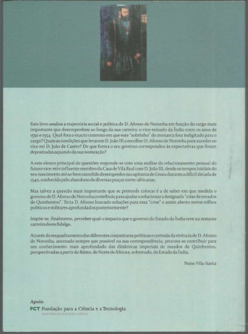 D. AFONSO DE NORONHA, VICE-REI DA ÍNDIA: PERSPECTIVAS POLÍTICAS DO REINO E DO IMPÉRIO EM MEADOS DE QUINHENTOS. *** Nuno Vila-Santa *** Lisboa: Centro de História de Além-Mar – Faculdade de Ciências Sociais e Humanas / Universidade Nova de Lisboa – Universidade dos Açores, 2011. Colecção: Teses – 7. (25 x 18,5 cm.) com 202 + [6] pp. Com algumas ilustrações a p/b.. Capa flexível, com badanas. Bom exemplar. Capa com pequenas marcas de manuseamento e um leve desgaste nas margens, encontrando-se em bom estado e limpa. Páginas bem conservadas e limpas. *** Primeira edição deste livro que, de acordo com o Autor, «analisa a trajectória social e política de D. Afonso de Noronha em função do cargo mais importante que desempenhou ao longo da sua carreira: o vice-reinado da Índia entre os anos de 1550 e 1554», procurando averiguar em que contexto é que este “sobrinho” do monarca foi indigitado para o cargo, quais as condições que levaram D. João III a escolher D. Afonso de Noronha para suceder ao vice-rei D. João de Castro e de que forma o seu governo correspondeu às expectativas que lhe foram depositadas aquando da sua nomeação. Mas talvez a questão mais importante a que se procurou responder foi a de saber em que medida o governo de D. Afonso de Noronha contribuiu para ajudar a solucionar a designada “crise de meados de Quinhentos”, se teria buscado soluções para essa “crise” e assim aberto novos trilhos políticos e militares aprofundados posteriormente. «Através do enquadramento das diferentes conjunturas políticas e cortesãs da vivência de D. Afonso de Noronha, ancorado sempre que possível na sua correspondência, procura-se contribuir para um conhecimento mais aprofundado das dinâmicas imperiais de meados de Quinhentos, perspectivadas a partir do Reino, do Norte de África e, sobretudo, do Estado da Índia.» (Índice nas imagens 3 e 4). Tiragem de apenas 500 exemplares. *** Portes: envio gratuito em correio normal (tarifa especial para livros) * envio em correio registado: 1,70