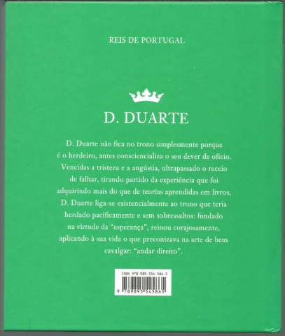 Dinastia de Avis. D. DUARTE. O Eloquente. 1433-1438. *** Margarida Garcez Ventura *** Matosinhos: QN [QuidNovi] – Edição e Conteúdos, S.A., [Sem ind. de ano: 2009 (?) – data do Copyright e do Depósito Legal]. Colecção: Reis de Portugal. (19 x 15,5 cm.) com 94 + [2] pp. + [8] pp. com ilustrações a cores e a p/b.. Capa dura. Bom exemplar. Capa com pequenas marcas de manuseamento, encontrando-se em bom estado e limpa. Páginas bem conservadas e limpas. *** Primeira edição desta obra sobre a vida e a acção política e governativa de D. Duarte, integrada na Colecção “Reis de Portugal”, coordenada pela Prof.ª Doutora Manuela Mendonça, Presidente da Academia Portuguesa da História. *** Portes: envio gratuito em correio normal (tarifa especial para livros) * envio em correio registado: 1,70