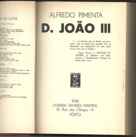 D. JOÃO III. *** Alfredo Pimenta *** Pôrto: Livraria Tavares Martins, 1936. Colecçâo: Estudos Históricos: Biblioteca de revisão histórica – [1]. (20,5 x 14,5 cm.) com [16] + 362 + [6] pp. + [4] folhas com ilustrações a p/b.. Encadernado, conservando a capa da frente original. Exemplar razoável. Encadernação em material sintético vermelho, tendo na lombada (lisa) o nome do autor, o título, o ano de publicação e alguns motivos ornamentais dourados. Encadernação com algumas marcas de manuseamento e os dourados algo sumidos na lombada, mas, de um modo geral, ainda em boas condições. Capa original com pequenas manchas de acidez, um vinco no canto inferior externo e parecendo ter sido um pouco aparada para uniformizá-la com o tamanho das páginas, mas, globalmente, ainda bastante apresentável. Páginas, de um modo geral, bem conservadas e limpas, mas apresentando um tom amarelecido e algumas manchas de acidez, algo frequentes, tudo devido, em larga medida, à qualidade do papel. *** Primeira edição deste estudo sobre D. João III, que inaugurou a colecção Estudos Históricos, Biblioteca de revisão histórica, que pretendia, através de uma investigação rigorosa e suportada em provas documentais, «reabilitar as figuras dos seus [portugueses] governantes supremos tanto tempo e tam sistemàticamente caluniadas por uma História tendenciosa», de que no caso de D. João III e na opinião do Autor, Alexandre Herculano seria um flagrante exemplo. «Primeira tentativa de obra de conjunto sôbre D. João III», escreve o Autor, «tem, o meu livro, por certo, defeitos. Mas firmado apenas na lição dos documentos, êle habilita-nos a juízos muito diversos dos formulados até agora, à sombra dos canones consagrados.» (Índice na imagem 4). *** Portes: envio gratuito em correio normal (tarifa especial para livros) * envio em correio registado: 1,70