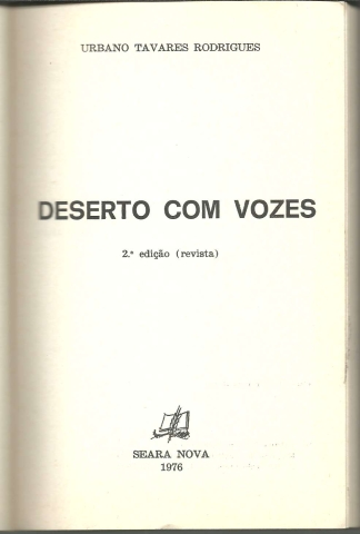 DESERTO COM VOZES. *** Urbano Tavares Rodrigues *** Lisboa: Seara Nova, 1976. Colecção Ficcionistas Portugueses. (18.5 x 12 cm.) com 316 + [4] pp. Capa flexível. Exemplar razoável. Capa com marcas de manuseamento, vincos, pequenas perdas de cor em alguns pontos, manchas ténues (de muito reduzida importância e só visíveis no lado de dentro) e um pouco gasta nas margens e na lombada, que apresenta também vincos de abertura. Apesar de acusar o uso e algum envelhecimento, de um modo geral, está ainda muito apresentável. Páginas globalmente bem conservadas e limpas, embora apresentem um tom amarelecido e alguns pontinhos de acidez (raros e de reduzida importância), devendo-se tudo, fundamentalmente, à qualidade do papel. *** 2.ª edição (revista) deste livro originalmente publicado em 1971, mas tendo a grande maioria dos textos nele incluídos sido escrita por volta de 1969, ano do II Congresso Democrático de Aveiro e das primeiras eleições legislativas realizadas após a saída de Salazar da Presidência do Conselho, eleições nas quais Urbano Tavares Rodrigues foi candidato por Beja. Nas palavras de Urbano Tavares Rodrigues: «Deserto com Vozes (apesar de alguns salpicos de Lisboa e de Paris) é um símbolo do Alentejo a que pertenço, do Alentejo pelo qual me bati. E, mais do que isso (até porque na escrita procuro quase sempre deixar vários níveis de leitura), é ainda o Portugal dos deserdados, a emigrarem, deixando mais nu e mais vasto o espaço onde outros começavam a rebelar-se. Mas o Alentejo – e todo o Portugal – que evoco nestas páginas, de mágoa, de insurreição, por vezes de agonia e sempre de amor, mesmo quando zangado, essa região – esse País – escravizada e trágica (quase silenciosa, não foram, de espaço a espaço, de longe a longe, os rumores, os gritos de revolta que tentei fixar), tudo isso se transmudou na convulsão, na euforia, na gesta da Revolução. É outro o Alentejo de hoje, ocupado pelos camponeses pobres, pelos ganhões do ontem desolado e melancólico que nestas páginas canta e range os dentes... Talvez que para a história do nosso povo tenham algum valor (por isso os reedito) estes escritos amiúde líricos, não raro cifrados, sempre empenhados num processo de luta e de ressurreição das liberdades. Ao lado do povo radicalmente se situam, ainda quando pessoalíssimos, no encantamento da sensação e da palavra. Textos, também alguns, de reflexão e de anúncio. E, assim, o creio, de fraternidade absoluta com os então tristes e lentos trabalhadores alentejanos, já cansados da esperança, no seu-meu deserto com vozes.» *** Portes: envio gratuito em correio normal (tarifa especial para livros) * envio em correio registado: 1,70