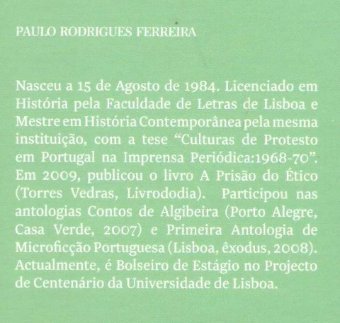 DICIONÁRIO DAS DISTÂNCIAS. *** Paulo Rodrigues Ferreira *** Torres Vedras: Livrododia Editores, 2011. (21 x 14 cm.) com 159 + [5] pp. Capa flexível, com badanas. Bom exemplar. Capa com ligeiras marcas de manuseamento, encontrando-se em bom estado e limpa. Páginas bem conservadas e limpas. *** Primeira edição deste livro organizado em duas partes, a primeira, intitulada “Dicionário das Distâncias”, constituída por histórias breves cujos títulos são palavras ordenadas alfabeticamente; a segunda, denominada “Pequenas Mortes” compõe-se de 118 micro-contos, por vezes apenas com a extensão de uma frase breve e muito marcados por um certo humor negro. Tiragem de apenas 500 exemplares. *** Portes: envio gratuito em correio normal (tarifa especial para livros) * envio em correio registado: 1,70