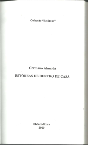 ESTÓREAS DE DENTRO DE CASA. *** Germano Almeida *** [Mindelo, São Vicente – Cabo Verde]: Ilhéu Editora, 2000. Colecção “Estóreas”. (21 x 13,5 cm.) com 191 + [5] pp. Capa flexível, com badanas. Exemplar razoável. Capa com marcas de manuseamento, alguns vincos discretos, manchas de acidez (só visíveis na parte de dentro, mas bastante concentradas) e um ligeiro desgaste nas margens. Apesar de tudo, globalmente, está ainda muito apresentável. Páginas, de um modo geral, em bom estado e limpas, embora as primeiras e as últimas se encontrem ligeiramente amarelecidas e apresentem ténues manchas de acidez, certamente devido ao contacto com a parte de dentro da capa. *** Primeira edição na editora deste livro originalmente publicado pelo Centro Cultural Português, do Instituto Camões, Praia-Mindelo, em 1996. Esta edição inclui um prefácio inédito (“Explicação um tanto a despropósito”) no qual o Autor explica, de maneira muito bem-humorada a génese dos três contos que o compõem. Germano Almeida (um dos fundadores da Ilhéu Editora) é um dos mais conceituados escritores cabo-verdianos, tendo sido distinguido, em 2018, com o Prémio Camões. *** Portes: envio gratuito em correio normal (tarifa especial para livros) * envio em correio registado: 1,70