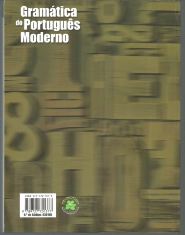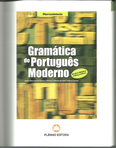 GRAMÁTICA DO PORTUGUÊS MODERNO. *** José Manuel de Castro Pinto – Maria do Céu Vieira Lopes *** Lisboa: Plátano Editora, S.A., 2002. (26,5 x 20 cm.) com 328 pp. Capa flexível. Bom exemplar. Capa com pequenas marcas de manuseamento e um leve desgaste nas margens, encontrando-se ainda em bom estado e limpa. Páginas bem conservadas e limpas. *** Primeira edição desta Gramática do Português Moderno, destinada primacialmente aos alunos do Ensino Básico e Secundário, elaborada de acordo com «as orientações dos especialistas e dando cumprimento aos Programas actuais.» *** Portes: envio gratuito em correio normal (tarifa especial para livros) * envio em correio registado: 1,70