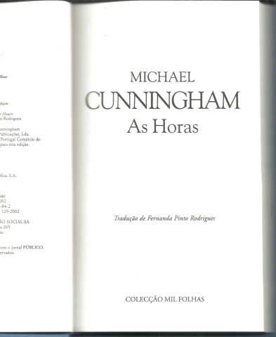 AS HORAS. *** Michael Cunningham *** Tradução de Fernanda Pinto Rodrigues *** Título original: The Hours *** Porto: Público Comunicação Social SA, 2002. Colecção Mil Folhas – 34. (21 x 12,5 cm.) com 223 + [1] pp. Capa dura, com sobrecapa de papel ilustrada. Bom exemplar. Sobrecapa com marcas de manuseamento, algumas manchas ligeiras, pequenas perdas de cor em alguns pontos e com um leve desgaste nas margens, mas, de um modo geral, ainda em boas condições e limpa. Capa dura com ligeiros sinais de uso, encontrando-se bem conservada e limpa. Páginas em bom estado e limpas, apresentando apenas algumas pequenas manchas nos cortes, de reduzida importância. *** Primeira edição na colecção deste romance distinguido, em 1999, com o prémio Pulitzer e o prémio PEN/Faulkner e que viria a ser adaptado para o cinema, com enorme sucesso, em 2002. *** Portes: envio gratuito em correio normal (tarifa especial para livros) * envio em correio registado: 1,70