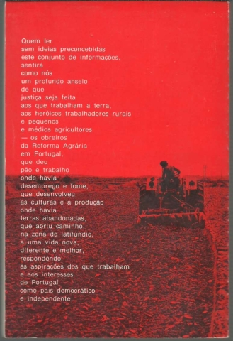 LIVRO NEGRO DO MAP. *** Revisão e arranjo gráfico: Colectivo das Edições «Avante!» *** [Lisboa]: Edições «Avante!», 1977. (21 x 14 cm.) com 103 + [1] pp. Capa flexível. Exemplar razoável. Capa com marcas de manuseamento, alguns pequenos vincos (inclusive de pressão), pequenas perdas de cor em alguns pontos, manchas ténues de acidez (só visíveis na parte de dentro) e um ligeiro desgaste nas margens e na lombada, mas, de um modo geral, ainda em boas condições. Páginas bem conservadas e limpas, apresentando apenas um ligeiro amarelecimento, próprio do papel e da passagem do tempo. *** Primeira edição deste livro cuja redacção se deve a um colectivo da Comissão Técnica de Apoio às Comissões da Reforma Agrária e de Pequenos e Médios Agricultores junto do Comité Central do PCP, com base em dados recolhidos em documentos diversos e em informações de Unidades Colectivas de Produção, de Cooperativas, de Sindicatos de trabalhadores agrícolas, de Ligas de pequenos e médios agricultores e de associações de rendeiros, procurando defender a validade da Reforma Agrária, numa época em que a Lei da Reforma Agrária de António Barreto se preparava para impor algumas regras num processo bastante turbulento e polémico. «(...) assim, o Livro Negro do MAP constituirá uma contribuição para a defesa dessa grande conquista e realização da Revolução Portuguesa, que deu pão e trabalho onde havia desemprego e fome, que desenvolveu as culturas e a produção onde havia terras abandonadas, que abriu caminho, na zona do latifúndio, a uma vida nova, diferente e melhor, respondendo às aspirações dos que trabalham e aos interesses de Portugal como país democrático e independente.» (Índice nas imagens 3 e 4). *** Portes: envio gratuito em correio normal (tarifa especial para livros) * envio em correio registado: 1,70