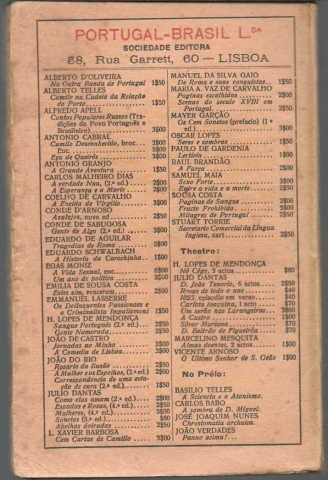MILAGRES DE PORTUGAL. D’entre Minho e Algarves. *** Sousa Costa [Da Academia das Sciencias de Lisboa] *** Lisboa: Portugal – Brasil Limitada – Sociedade Editora; Rio de Janeiro: Companhia Editora Americana – Livraria Francisco Alves, [Sem ind. de ano: provavelmente de meados da década de 1920]. (19 x 12 cm.) com 270 + [2] pp. Capa flexível. Exemplar razoável. Capa com marcas de manuseamento, manchas de acidez, um pouco empoeirada e com um pequeno desgaste nas margens e na lombada, que apresenta também vincos de abertura. Tem um ex-líbris colado na parte de dentro da capa da frente e um carimbo de livraria no canto superior direito da parte de dentro da contracapa. Apesar de envelhecida e não muito limpa, globalmente está ainda apresentável. Páginas, de um modo geral, em bom estado e limpas, embora apresentem um tom amarelecido e manchas de acidez, algo frequentes, mas que se devem também, em grande medida, à qualidade do papel. No canto superior direito da primeira página (anterrosto) tem uma assinatura de posse e um número manuscrito. *** Primeira edição deste interessante livro do Autor que recolhe impressões sobre aspectos curiosos e algumas personalidades do Minho, Trás-os-Montes, Douro, Alentejo e Algarve. (Índice nas imagens 3 e 4). Interessante e não vulgar. *** Portes: envio gratuito em correio normal (tarifa especial para livros) * envio em correio registado: 1,70