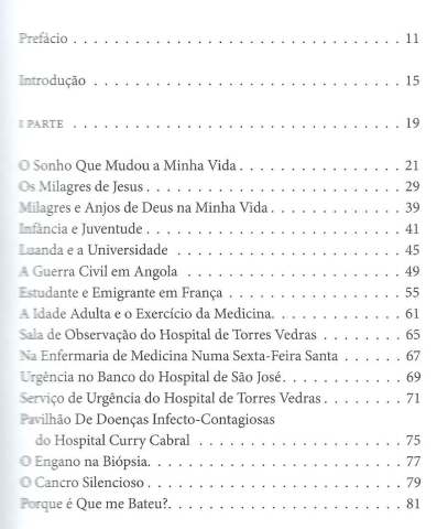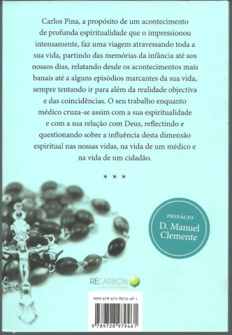 MILAGRES NA VIDA DE UM MÉDICO. [Deus na Minha Vida]. *** Carlos Pina *** Prefácio: Manuel Clemente [Bispo do Porto] *** Torres Vedras: Livrododia Editores, [Sem ind. de ano: 2011 (?) – data do copyright e do Depósito legal]. (Printed by A3 – Artes Gráficas – Fevereiro 2010). (20,5 x 14 cm.) com [-2] 136 + [2] pp. (certamente devido a um erro na numeração das páginas, pois claramente parece não faltar nenhuma folha, a primeira página numerada tem o n.º 9, quando deveria ter o n.º 7). Capa flexível, com badanas. Bom exemplar. Capa com ligeiras marcas de manuseamento, encontrando-se bem conservada e limpa. Páginas em bom estado e limpas. *** Julgo tratar-se da primeira edição deste livro (que teve pelo menos três) do médico Carlos Pina, que nele ensaia uma reflexão sobre a presença da espiritualidade na sua vida e na sua profissão. Lê-se na contracapa: «Carlos Pina, a propósito de um acontecimento de profunda espiritualidade que o impressionou intensamente, faz uma viagem atravessando toda a sua vida, partindo das memórias de infância até aos nossos dias, relatando desde os acontecimentos mais banais até a alguns episódios marcantes da sua vida, sempre tentando ir para além da realidade objectiva e das coincidências. O seu trabalho enquanto médico cruza-se assim com a espiritualidade e com a sua relação com Deus, reflectindo e questionando sobre a influência desta dimensão espiritual nas nossas vidas, na vida de um médico e na vida de um cidadão.» (Índice nas imagens 3 e 4). *** Portes: envio gratuito em correio normal (tarifa especial para livros) * envio em correio registado: 1,70