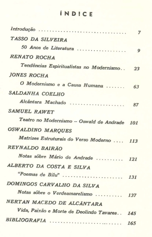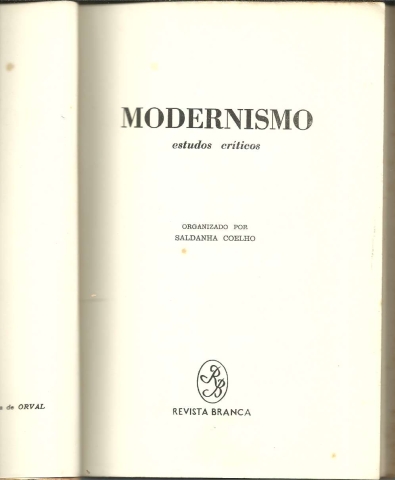 MODERNISMO. Estudos Críticos. *** Organizado por Saldanha Coelho *** [Vários Autores] *** [Rio de Janeiro]: Revista Branca, 1954. (24 x 16,5 cm.) com 190 + [6] pp. Capa flexível, com badanas. Exemplar razoável. Capa com marcas de manuseamento, amarelecida, com algumas manchas, pequenas esfoladelas (sobretudo na contracapa) e gasta nas margens e na lombada, que se encontra também um pouco escurecida. Apesar de um pouco envelhecida, de um modo geral, está ainda apresentável. Páginas globalmente bem conservadas e limpas, embora apresentem um tom ligeiramente amarelecido e pequenas manchas de acidez (sobretudo nas primeiras, nas últimas e nos cortes). Tem uma etiqueta de livraria colada na base da primeira página. *** Primeira edição em livro desta obra que reúne um conjunto de trabalhos sobre o Movimento Modernista brasileiro, originalmente publicados em dois números da Revista Branca e que pretendiam assinalar o trigésimo aniversário daquele que é considerado o momento inaugural daquele movimento: a Semana de Arte Moderna, realizada em São Paulo, em 1922. Diferentemente da maioria das contribuições dadas na época para a comemoração da efeméride, os estudos reunidos pela Revista Branca, assinados quase todos por jovens escritores, já afastados geracionalmente dos modernistas, não procuraram ter um carácter apologético nem apenas documentário, mas tanto quanto possível, tentaram proceder a uma revisão de valores. (Índice na imagem 4). Livro invulgar. *** Portes: envio gratuito em correio normal (tarifa especial para livros) * envio em correio registado: 1,70