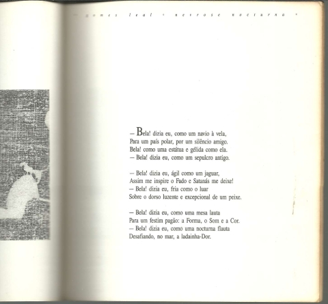 NEVROSE NOCTURNA. *** Gomes Leal *** Ilustrações de Orlando Paulo Gonçalves *** Lisboa: Hiena Editora, 1988. Colecção: Águas, Luas Doidas – 5. (19 x 17 cm.) com [24] pp. não numeradas. Com várias ilustrações a p/b.. Capa flexível. Exemplar razoável. Capa com marcas de manuseamento, um pouco amarelecida (algo visível sobretudo no lado de dentro, junto das margens), pequenas perdas de cor em alguns pontos e um pouco gasta nas margens e na lombada. Apesar de acusar o uso e algum envelhecimento, de um modo geral, está ainda apresentável. Páginas, de um modo geral, em bom estado e limpas, embora apresentem um tom amarelecido, algumas pequenas manchas de acidez, os cortes um pouco escurecidos e um ligeiro desgaste nos cantos exteriores das primeiras e das últimas. *** Primeira edição independente deste poema de Gomes Leal, numa bela realização gráfica da memorável Hiena Editora. Com uma tiragem de 1000 exemplares. *** Portes: envio gratuito em correio normal (tarifa especial para livros) * envio em correio registado: 1,70