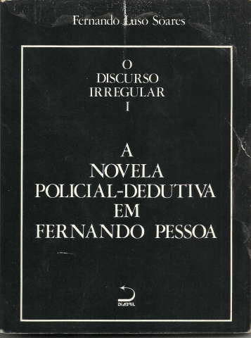 O Discurso Irregular – 1: A NOVELA POLICIAL-DEDUTIVA EM FERNANDO PESSOA. *** Fernando Luso Soares *** Lisboa: Diabril, 1976. Colecção: Extra – 7. (19 x 14,5 cm.) com 144 pp. Capa flexível. Exemplar razoável. Capa em mau estado, com evidentes marcas de uso, vincos (um dos quais, na contracapa, bastante pronunciado e que a atravessa a toda a altura, mais ou menos no centro), gasta nas margens e com falta de alguns pedaços da superfície plástica que cobre o papel junto das margens. Páginas, de um modo geral, em bom estado e limpas, mas apresentam um tom amarelecido (um pouco mais forte junto das margens das primeiras e das últimas) e um vinco ligeiro, na vertical, mais ou menos no centro e que é também mais evidente nas últimas e nas primeiras. Em suma: bom exemplar de leitura, mas um pouco maltratado. *** Primeira edição desta obra na qual o Autor reúne dois ensaios sobre Fernando Pessoa, onde procura analisar os «problemas que o espírito de raciocinador inveterado do poeta trouxe ao domínio da sua prosa, quer no campo policiário (o que ainda constituirá surpresa para muita gente) quer no domínio mais amplo da especulação intelectual em geral». (Índice na imagem 4). *** Portes: envio gratuito em correio normal (tarifa especial para livros) * envio em correio registado: 1,70