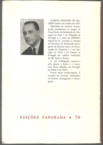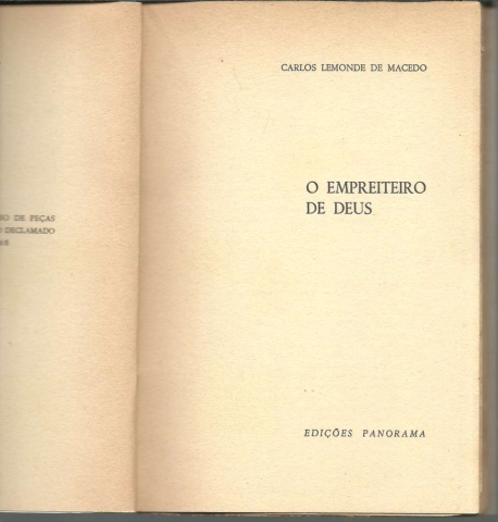 O EMPREITEIRO DE DEUS. *** Carlos Lemonde de Macedo *** Lisboa: Edições Panorama, 1966. Colecção Panorama – 70. (18,5 x 13 cm.) com 133 + [11] pp. Capa flexível, com badanas. Exemplar razoável. Capa com marcas de manuseamento, manchas ligeiras, pequenas perdas de cor em alguns pontos, vincos discretos e um pouco gasta nas margens e na lombada. Apesar de acusar o uso e algum envelhecimento, de um modo geral, está ainda muito apresentável. Páginas globalmente bem conservadas e limpas, embora apresentem um tom amarelecido (um pouco mais forte nas margens), próprio do papel e um ou outro pontinho de acidez (raros). No canto superior esquerdo da última página tem, no entanto, um carimbo de posse. *** Primeira edição desta peça de teatro, distinguida com o “Prémio do Concurso de Peças Inéditas para Teatro Declamado do S. N. I. – 1965” e que tem por temática a epopeia dos primeiros jesuítas portugueses no Brasil. *** Portes: envio gratuito em correio normal (tarifa especial para livros) * envio em correio registado: 1,70