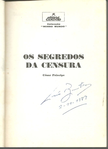 OS SEGREDOS DA CENSURA. *** César Príncipe *** Lisboa: Editorial Caminho, 1979. Colecção “Nosso Mundo” – 5. (18,5 x 13 cm.) com 156 + [4] pp. Capa flexível. Exemplar razoável. Capa com marcas de manuseamento, manchas (também no lado de dentro, de acidez), alguns pequenos vincos e um pouco gasta nas margens e na lombada, que apresenta também vincos de abertura. Apesar de acusar o uso e o envelhecimento, de um modo geral, está ainda apresentável. Páginas globalmente bem conservadas, mas as primeiras e as últimas apresentam manchas de acidez (sobretudo junto das margens), certamente provocadas pelo contacto com a parte de dentro da capa, que acabam por conferir-lhes um aspecto envelhecido e manchado. Todas apresentam um tom amarelecido, próprio do papel. No rosto tem uma assinatura de posse e uma data manuscrita. *** Primeira edição deste livro que consiste numa «recolha de telegramas telefonados da Censura fascista, contendo ordens transmitidas a um jornal diário [Jornal de Notícias]. Trata-se de uma valiosa fonte de informações que permite ao leitor compreender como era inteiramente filtrada e falsificada a “informação” que o fascismo impunha ao nosso povo. Os Segredos da Censura constituem «um verdadeiro diário do arrolhamento da Informação, um jornal invisível, ditado pelo telefone do silêncio».» (Índice na imagem 4). *** Portes: envio gratuito em correio normal (tarifa especial para livros) * envio em correio registado: 1,70