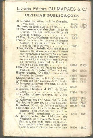 PÁGINAS DE SANGUE. II Volume – Buiças, Costas & C.ª. *** Sousa Costa [Da Academia das Ciencias de Lisboa] *** Lisboa: Livraria Editora Guimarães & C.ª, [Sem ind. de ano: provavelmente cerca de 1932 – data no final do texto]. (18,5 x 11,5 cm.) com 374 + [2] pp. Capa flexível. Exemplar razoável. Capa envelhecida, com evidentes marcas de manuseamento, vincos, manchas e algo gasta nas margens e na lombada, que apresenta também vincos de abertura profundos. No canto superior esquerdo da capa da frente tem uma pequena inscrição manuscrita a tinta e na parte de dentro da mesma capa tem colado um ex-líbris. Apesar de algo cansada, de um modo geral, está ainda apresentável. Páginas em relativo bom estado, mas amarelecidas e apresentando algumas manchas de acidez, algo frequentes e localizadas sobretudo nas margens. No canto superior direito da primeira página tem um pequeno número manuscrito. *** Primeira edição desta importante obra histórica, na qual o Autor evoca, a partir de testemunhos directos e fontes documentais, as trágicas lutas políticas que ocorreram em Portugal, desde o Regicídio à chamada Noite Sangrenta (19 de Outubro de 1921). (Índice completo nas imagens 4 e 5). *** Portes: envio gratuito em correio normal (tarifa especial para livros) * envio em correio registado: 1,70