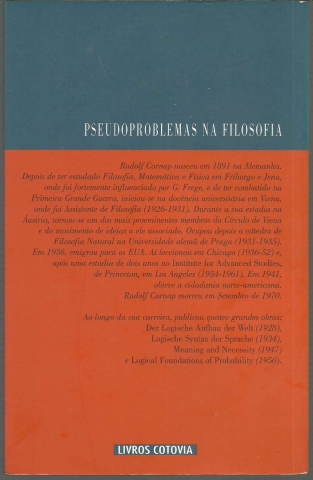 PSEUDOPROBLEMAS NA FILOSOFIA. A psique alheia e a disputa em torno do Realismo. *** Rudolf Carnap *** Tradução de António Zilhão *** Título original: Scheinprobleme in der Philosophie – Das Fremdpsychische und der Realismusstreit *** Lisboa: Livros Cotovia, 2002. Colecção: Ensaio. (20,5 x 13 cm.) com 89 + [3] pp. Capa flexível, com badanas. Exemplar razoável. Capa com marcas de manuseamento, alguns vincos ligeiros e um leve desgaste nas margens, mas, de um modo geral, ainda em bom estado e limpa. Páginas globalmente bem conservadas e limpas, mas as primeiras, as últimas e os cortes apresentam manchas de acidez, que acabam por conferir-lhes um aspecto um pouco envelhecido. *** Presumível primeira edição portuguesa desta obra sobre a qual se pode ler nas badanas: «Pseudoproblemas na Filosofia foi publicado em 1928, o ano da publicação de A Estrutura Lógica do Mundo. Estes dois escritos devem ser considerados em conjunto. Em A Estrutura Lógica do Mundo, Carnap tentou realizar efictivamente o programa empirista de Mach, segundo o qual os corpos materiais seriam complexos de sensações. Tentou assim mostrar como seria, de facto, possível construir esses complexos a partir dos seus elementos e de acordo com a sua estrutura. Como a experiência é dada ao sujeito como uma totalidade instantânea e não como um agregado de sensações simples, Carnap tomou como base de partida experiências instantâneas totais e uma relação primitiva de recordação de semelhança entre elas. Procedeu em seguida a uma reconstrução lógica da constituição dos diferentes domínios de objectos sensíveis de acordo com a sua hierarquia constitucional. Em Pseudoproblemas na Filosofia, Carnap tomou como adquirida a construção positiva empreendida em A Estrutura Lógica do Mundo e enfatizou as suas consequências negativas. A mais importante seria a de que os conceitos metafísicos nem seriam constituíveis no sistema constitucional nem encontrariam expressão na linguagem da Teoria Constitucional. Enquanto sucessão encadeada de definições, esta só pressuporia conceitos lógicos; em particular, o conceito de implicação. Como os conceitos metafísicos não seriam constituíveis, as frases nas quais estes ocorressem seriam destituídas de conteúdo cognitivo. Como o vocabulário específico da Teoria Constitucional seria recondutível a conceitos da Lógica, a linguagem formalizada usada por esta seria o veículo neutro através do qual o discurso filosófico deveria ser expresso. A leitura de Pseudoproblemas na Filosofia permitirá ao leitor interessado tomar contacto com os fundamentos teóricos que sustentaram a atitude anti-metafísica que tornou conhecida a Filosofia do Círculo de Viena.» (Índice nas imagens 3 e 4). *** Portes: envio gratuito em correio normal (tarifa especial para livros) * envio em correio registado: 1,70