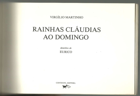 RAINHAS CLÁUDIAS AO DOMINGO. *** Virgílio Martinho *** Desenhos de Eurico *** [Sem ind. de local: Lisboa]: Contexto, Editora, 1982. Colecção: Cábulas de Navegação – 7. (15 x 22,5 cm.) com 38 + [2] pp. Com três ilustrações a p/b.. Capa flexível, com badanas. Exemplar razoável. Capa com marcas de manuseamento, algumas manchas, um pouco descolorida em alguns pontos, ligeiramente empoeirada e gasta nas margens e, sobretudo, na lombada, que apresenta mesmo pequenos rasgões nas extremidades, que foram fixados com cola branca. Globalmente, apesar de envelhecida e algo maltratada, está ainda apresentável. Páginas em relativo bom estado e globalmente limpas, embora apresentem algumas marcas de uso e pequenas manchas, pouco frequentes, incidindo sobretudo nas primeiras e nas últimas. A primeira página apresenta restos de uma etiqueta (talvez da editora ou de livraria) e junto da lombada tem colado um rectângulo de papel, que talvez tenha sido também parte de uma etiqueta. *** Segunda edição absoluta (primeira na editora e na colecção) deste conto, originalmente publicado em 1972, que Luís Miguel Rosa, no texto de apresentação de uma edição recente, considera «uma obra-prima de esqualidez terra-a-terra», onde se narra o encontro, numa noite fria, entre Vergílio, um cliente sem dinheiro e Sofia, uma prostituta, encontro que terá uma evolução imprevista, do mesmo modo como uma linguagem crua e que parece comprazer-se com detalhes grotescos e sórdidos se revela deliberadamente incapaz de afundar o tom emotivo e um vago romantismo que percorrem a narrativa. O Autor foi um escritor, dramaturgo e tradutor, próximo da corrente surrealista. *** Portes: envio gratuito em correio normal (tarifa especial para livros) * envio em correio registado: 1,70