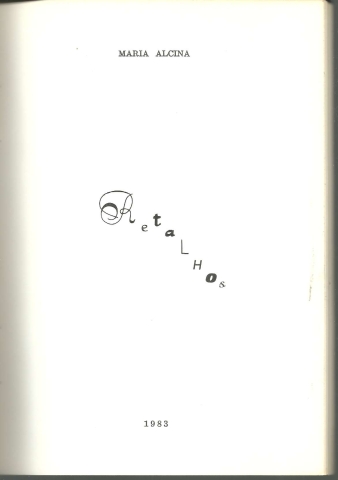RETALHOS. *** Maria Alcina *** [Sem ind. de local]: [Sem ind. de editor: provável Edição da Autora], 1983. (Comp. e Impr. Na Tip. S. Pedro, Lda. – Alcanena). (21 x 15 cm.) com 107 + [1] pp. Capa flexível. Bom exemplar. Capa com pequenas marcas de manuseamento, manchas ligeiras e um leve desgaste nas margens e na lombada, mas, de um modo geral, ainda em bom estado e limpa. Páginas bem conservadas e limpas. *** Primeira e provavelmente única edição deste livro de poemas que terá constituído a estreia literária (tardia) da Autora e que terá sido mesmo o único livro que publicou. *** Portes: envio gratuito em correio normal (tarifa especial para livros) * envio em correio registado: 1,70