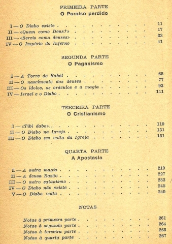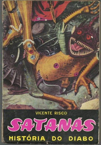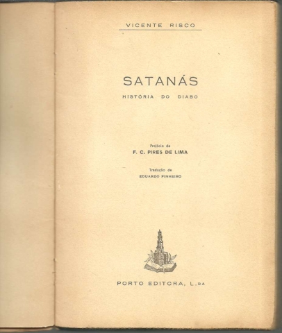 SATANÁS. História do Diabo. *** Vicente Risco *** Prefácio de F. C. Pires de Lima *** Tradução de Eduardo Pinheiro *** [Porto]: Porto Editora, L.da, [Sem ind. de ano: provavelmente do final da década de 1950 ou início da década de 1960]. (21,5 x 14,5 cm.) com 268 + [4] pp. + [6] folhas com ilustrações a p/b.. Capa flexível, com badanas. Exemplar razoável. Capa com marcas de manuseamento, manchas, pequenas perdas de cor em alguns pontos, esfoladelas, uma pequena área superficialmente roída pela traça no canto superior direito da contracapa e um pouco gasta e amachucada nas margens e na lombada, que apresentam mesmo alguns pequenos rasgões, sendo que a lombada mostra ainda vincos de abertura. Globalmente, apesar de um pouco envelhecida e cansada, está ainda apresentável. Páginas globalmente bem conservadas e limpas, embora apresentem um tom amarelecido, próprio do papel, e pequenas manchas de acidez (pouco frequentes e de reduzida importância). Algumas folhas apresentam pequenas irregularidades nas margens por terem sido abertas de maneira pouco cuidadosa. Cerca de metade das páginas está ainda por abrir. *** Primeira edição portuguesa (e julgo que única), desta apreciada obra, sobre a qual se pode ler na contracapa: «O Diabo existe. O Diabo volta. Com estas duas afirmações categóricas, o autor de «Satanás. História do Diabo» responde ao leitor curioso que se aventura pelas páginas deste livro extraordinário. De novo o tema do diabólico atrai os homens: livros, doutrinas e polémicas actualizam-no a cada momento, e por isso não devemos estranhar esta importante história do Príncipe das trevas, cuja maligno labor não tem descanso desde o pecado original até aos nossos dias. Descrever esta luta constante é empresa difícil e arriscada, mas este tema encontrou o seu autor na pessoa de Vicente Risco. Conhecido como novelista pela sua obra tão discutida «La Puerta de Paja», como historiador pela sua recente «Historia de los Judíos», e como investigador e etnólogo pelos seus notáveis estudos sobre os fantasmas, as feiticeiras e o diabólico nas tradições galegas, Vicente Risco escreveu sobre o Diabo uma obra excepcional. Erudita e leve, ortodoxa e atrevida, forte e estranha, esta história do Diabo faz-nos enfrentar um mundo que esquecemos com demasiada frequência. E no entanto, o Demónio «como um leão rugindo, dá voltas procurando a quem devorar», intentando sempre e em toda a parte a perdição do homem e o triunfo do Mal. Negá-lo é reconhecê-lo: quem não crê nele é já seu servidor. «Satanás, História do Diabo» é uma obra em que muitos dos seus capítulos se prestam a uma reflexão profunda. Outro aspecto interessante nos oferece este livro: uma selecção de ilustrações que nos apresenta a evolução do diabólico como tema artístico. A iconografia do Diabo, passe a expressão, está representada por um original conjunto de estampas que, de modo variado mas não exaustivo, permite mostrar-nos como os artistas interpretaram a figura do Demónio.» (Índice na imagem 4). Invulgar. *** Portes: envio gratuito em correio normal (tarifa especial para livros) * envio em correio registado: 1,70