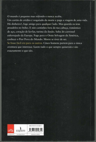 SE FOSSE FÁCIL ERA PARA OS OUTROS. *** Rui Cardoso Martins *** Alfragide: Publicações Dom Quixote, 2012. (23,5 x 15,5 cm.) com 245 + [3] pp. Capa flexível, com badanas. Bom exemplar. Capa com pequenas marcas de manuseamento e um leve desgaste nas margens, encontrando-se bem conservada e limpa. Páginas bem conservadas e limpas, embora apresentem um ligeiro amarelecimento, próprio do papel, e uma ou outra pequena mancha (raras e de muito reduzida importância). *** Primeira edição do terceiro romance de Rui Cardoso Martins, no qual cinco amigos, todos a atravessarem uma fase menos feliz das suas vidas, resolvem fazer uma viagem através dos Estados Unidos, embarcando numa jornada de aventuras, umas vezes cómicas, outras vezes perigosas, que determina um encontro sem subterfúgios e sem concessões consigo mesmos, com as suas memórias, frustrações e contradições, num questionamento impiedoso do sentido das suas vidas. *** Portes: envio gratuito em correio normal (tarifa especial para livros) * envio em correio registado: 1,70