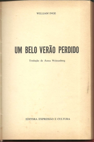 UM BELO VERÃO PERDIDO. *** William Inge *** Tradução de Áurea Weissenberg *** Título original: My Son is a Splendid Driver *** [Rio de Janeiro]: Editôra Expressão e Cultura, 1972. Colecção: Os Grandes Romances Universais. (20,5 x 13,5 cm.) com 174 + [2] pp. Capa dura. Exemplar razoável. Capa com marcas de manuseamento, algumas pequenas manchas, um ligeiros desgaste nas margens e na lombada e apresentando os dourados na pasta da frente algo sumidos. Apesar de um pouco envelhecida, de um modo geral, está ainda bastante sólida e apresentável. Páginas globalmente bem conservadas e limpas, embora apresentem um tom amarelecido (um pouco mais forte nas margens) e algumas pequenas manchas de acidez (não muito frequentes nem muito importantes). A folha de guarda inicial tem um grande carimbo de livraria. *** Primeira edição em língua portuguesa deste romance que narra a vida de uma família norte-americana (Hansen), do Kansas, contada em duas partes: a primeira descreve a fase inicial da vida do narrador e a segunda encontra um narrador já adulto. A história é marcada pela perda do irmão do narrador, morto num acidente de automóvel, apesar de ser um excelente condutor, e por uma doença sexualmente transmissível (sífilis) que a mãe do narrador, para seu completo desespero, contrai através do marido... William Inge destacou-se sobretudo como dramaturgo e argumentista, escrevendo peças e filmes de grande sucesso como «Picnic», «Bus Stop», «The Dark at the Top of the Stairs» e «Splendour in the Grass». *** Portes: envio gratuito em correio normal (tarifa especial para livros) * envio em correio registado: 1,70