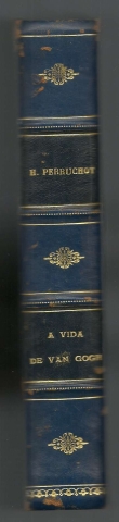 A VIDA DE VAN GOGH. *** Henri Perruchot *** Tradução de Domingos Monteiro *** Lisboa: Editorial Estúdios Cor, Lda., 1961. Colecção Destinos – 1. (22 x 14 cm.) com 430 + [2] pp. com algumas pequenas ilustrações a p/b. + [7] folhas com ilustrações a p/b.. Encadernado, conservando a capa e a contracapa originais. Exemplar razoável. Encadernação com lombada em pele azul e pastas recobertas por papel de fantasia que imita pele, de tom também predominantemente azul; lombada com quatro nervos, e com o nome do Autor, o título e alguns motivos ornamentais gravados a ouro. Encadernação com marcas de manuseamento, algumas esfoladelas na pele e com um pequeno desgaste nas margens e na lombada, mas, de um modo geral, bastante sólida e ainda muito apresentável. Capas originais um pouco escurecidas e com algumas manchas (visíveis sobretudo na parte de dentro), mas, de um modo geral, em bom estado e limpas. Páginas em bom estado e limpas, embora apresentem um tom amarelecido (um pouco mais forte junto das margens), próprio do papel. Tem pequenas manchas no corte lateral, sem grande importância. *** 2.ª edição portuguesa desta importante biografia do pintor holandês Vincent Van Gogh, um dos mais famosos e marcantes nomes da história da arte. *** Portes: envio gratuito em correio normal (tarifa especial para livros) * envio em correio registado: 1,70