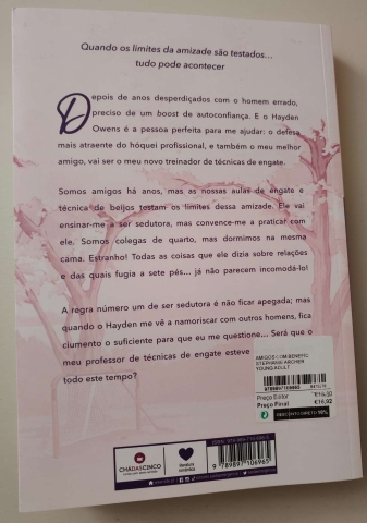 Somos amigos há anos, mas as nossas aulas de engate e técnica de beijos testam os limites dessa amizade. Ele vai ensinar-me a ser sedutora, mas convence-me a praticar com ele. Somos colegas de quarto, mas dormimos na mesma cama. Estranho! Todas as coisas que ele dizia sobre relações e das quais fugia a sete pés… já não parecem incomodá-lo!