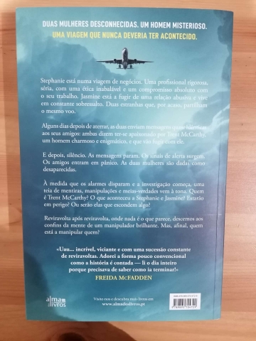 "Stephanie está numa viagem de negócios. Uma profissional rigorosa, séria, com uma ética inabalável e um compromisso absoluto com o seu trabalho. Jasmine está a fugir de uma relação abusiva e vive em constante sobressalto. Duas estranhas que, por acaso, partilham o mesmo voo.