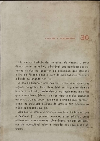 Thor Heyerdahl leva-nos até à Ilha de Páscoa após a célebre aventura da jangada Kon-Tiki. Em Aku-Aku, o autor relata a sua expedição a uma das regiões mais isoladas e enigmáticas do mundo, descrevendo costumes, crenças, histórias e rituais de um povo guardião de segredos milenares. Entre túneis vulcânicos, cavernas subterrâneas e estátuas colossais de granito, o relato combina investigação, aventura e observação humana, revelando uma ilha onde mito e realidade caminham lado a lado, como sombras ao pôr-do-sol.