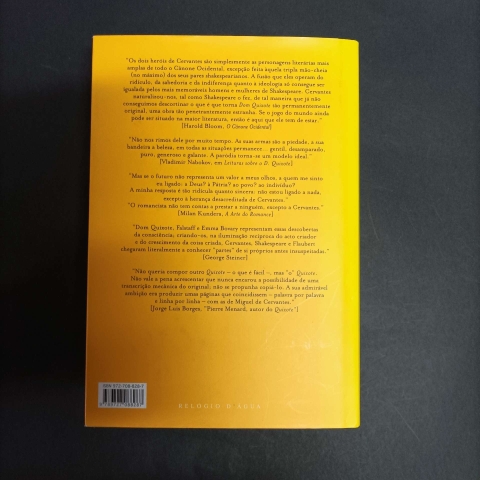 “Os dois heróis de Cervantes são simplesmente as personagens literárias mais amplas de todo o Cânone Ocidental, excepção feita àquela tripla mão-cheia (no máximo) dos seus pares shakespearianos. A fusão que eles operam do ridículo, da sabedoria e da indiferença quanto à ideologia só consegue ser igualada pelos mais memoráveis homens e mulheres de Shakespeare. Cervantes naturalizou-nos, tal como Shakespeare o fez, de tal maneira que já não conseguimos descortinar o que é que torna Dom Quixote tão permanentemente original, uma obra tão penetrantemente estranha. Se o jogo do mundo ainda pode ser situado na maior literatura, então é aqui que ele tem de estar.”
