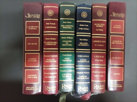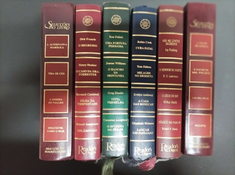 1 A Chave de Rebecca, Ken Follet; O Safari de Mrs. Pollifax, Dorothy Gilman; Um Dia Felix, Isaac Bashevis Singer; Malevil, Robert Merle; 2.50 euros