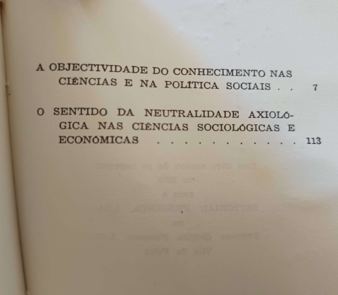 (A objectividade do conhecimentos nas Ciências e nas Políticas Sociais / O Sentido da Neutralidade Axiológica nas Ciências Sociológicas e Económicas).