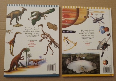 Par de livro em língua italiana para crianças e pré adolescentes "Dinosauri/Universo" da colecção I Record della Natura. Foram editados por Istituto Geografico De Agostini para a série De Agostini Ragazzi, no ano de 1999. Têm 30 páginas, capa dura, formato normal e estão em bom estado. Não vendo em separado. Barato para desocupar. Negociável, vendo pela melhor oferta. Faça a sua oferta.