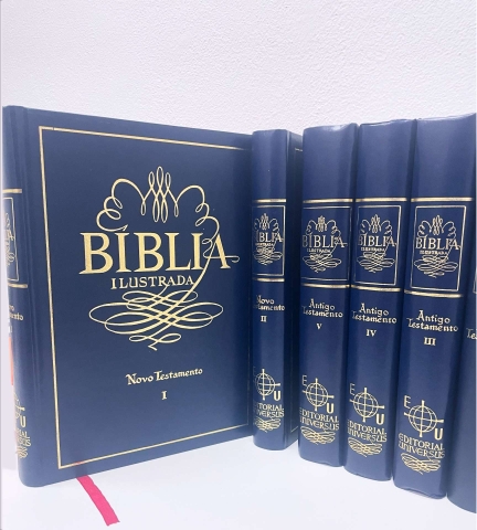 Mergulhe na História Sagradas com a Bíblia de luxo em 7 volumes profundamente ilustrados.