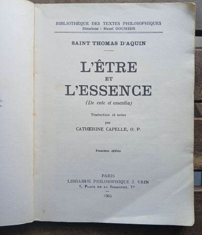 Saint Thomas D´aquin: l´Ètre et l´essence - Librairie P. J.Vrin 1965