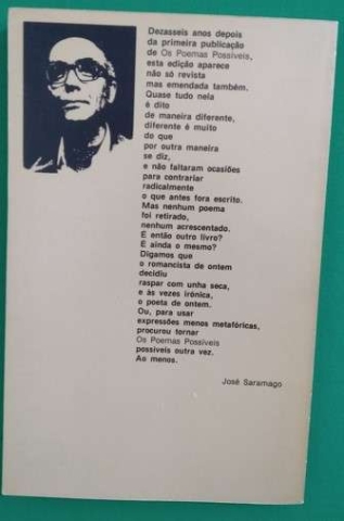 Na primeira obra poética de José Saramago descobre-se uma poesia de liberdade, de fraternidade e de luta. Uma luta disfarçada, por dentro das palavras. Pelo interior labiríntico de respiração que habitam todos estes poemas, publicados pela primeira vez em 1966. Digamos que eram os "poemas possíveis" da altura, quando a censura espiava a alma dos escritores.