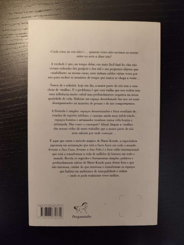 «Cada coisa no seu sítio!»… quantas vezes não ouvimos as nossas mães ou avós a dizer isso? A verdade é que, no tempo delas, era mais fácil fazê-lo; elas não viviam rodeadas dos gadgets e dos mil e um pequenos objetos que «atafulham» as nossas casas, nem tinham saldos quatro vezes por ano para encher os armários de roupa que nunca se chega a vestir… Temos de o admitir: hoje em dia, a maior parte de nós tem a casa cheia de «tralha». E o problema é que essa tralha que nos rodeia tem uma influência muito subtil mas profundamente negativa na nossa qualidade de vida. Habitar um espaço desordenado faz-nos ser mais desorganizados na maneira de pensar e de nos comportarmos. A fórmula é simples: espaços desarrumados e feios resultam de estados de espírito infelizes, e causam ainda mais infelicidade; espaços bonitos e arrumados resultam numa vida bonita e arrumada. Mas como o conseguir? Afinal, limpar a «tralha» das nossas vidas dá tanto trabalho que a maior parte de nós nem saberia por onde começar… É aqui que entra o método mágico de Marie Kondo, a especialista japonesa em arrumação que está a fazer furor em todo o mundo. Arrume a Sua Casa, Arrume a Sua Vida é o best-seller internacional que está a transformar a vida de milhões de leitores em todo o mundo. Revela os segredos e ferramentas simples, práticos e profundamente sábios de Marie Kondo para deitar fora o que não interessa, cuidar do que interessa e transformar os espaços que habita em ambientes de tranquilidade e ordem.