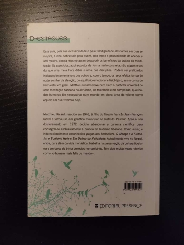 Ricard, monge Budista, partilha neste livro o segredo para se alcançar a felicidade. Nas palavras do autor, a chave reside em cada um de nós ao colocarmos algum esforço nos diversos comportamentos que integram o quotidiano. A felicidade é uma faculdade que precisa de ser aprendida e Ricard ensina-nos como fazê-lo.
