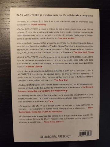 Passaram já 30 anos desde que as mulheres se tornaram metade da população com formação universitária nos Estados Unidos. Contudo, são os homens que ainda estão à frente da maioria dos cargos mais elevados nas empresas e nos governos. Embora fatores como a discriminação constituam obstáculos reais à ascensão das mulheres a lugares de poder, elas são também condicionadas por crenças e atitudes enraizadas no subconsciente. Com Faça Acontecer Sheryl Sandberg pretende analisar e ajudar a derrubar estes obstáculos. Num tom bem-humorado, perspicaz e sobretudo realista, este livro encoraja as mulheres a não desistirem de desenvolver o seu potencial.