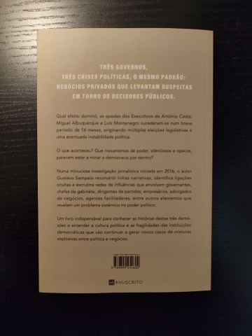 Numa minuciosa investigação jornalística iniciada em 2016, o autor Gustavo Sampaio reconstrói linhas narrativas, identifica ligações ocultas e escrutina redes de influências que envolvem governantes, chefes de gabinete, dirigentes de partidos, empresários, advogados de negócios, agentes facilitadores, entre outros elementos que revelam um problema sistémico no poder político.