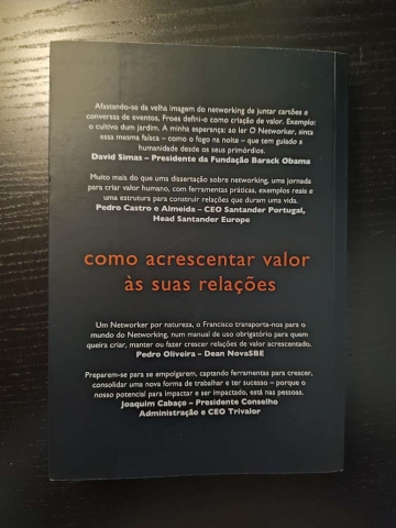 Há uma promessa, aliás duas, feitas no livro que aqui lhe adianto: a primeira, é que quando acabar este livro, formação, treino terá uma forma diferente de olhar, pensar, fazer networking. A segunda, é que uma vez percebendo, absorvendo e pondo em prática os conceitos e ferramentas que consigo partilharei, se tornará no melhor Networker que alguma vez poderá ser.