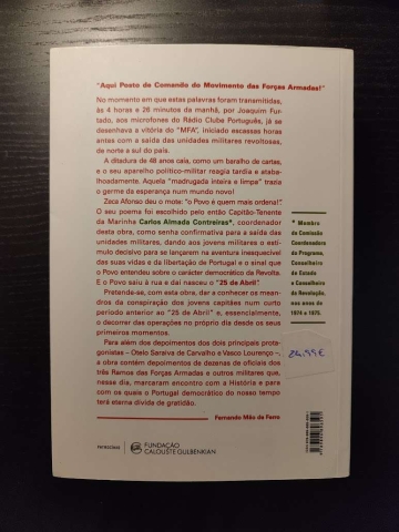 Para além de dois dos principais protagonistas - Otelo Saraiva de Carvalho e Vasco Lourenço -, a obra contém depoimentos de dezenas de oficiais dos três Ramos das Forças Armadas e outros militares que, nesse dia, marcaram encontro com a História e para com os quais o Portugal democrático do nosso tempo terá eterna dívida de gratidão.