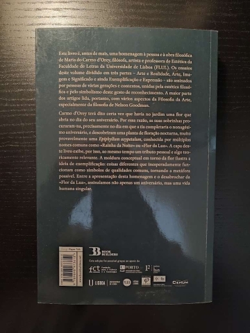 Este livro é, antes de mais, uma homenagem à pessoa e à obra filosófica de Maria do Carmo d’Orey, filósofa, artista e professora de Estética da Faculdade de Letras da Universidade de Lisboa (FLUL). Os ensaios deste volume dividido em três partes - Arte e Realidade, Arte, Imagem e Significado e ainda Exemplificação e Expressão - são assinados por pessoas de várias gerações e contextos, unidas pela estética filosófica e pelo simbolismo deste gesto de reconhecimento.