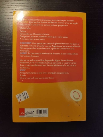 January é uma escritora romântica e uma otimista por natureza. Augustus é um escritor literário indiferente ao amor e frio por opção. Mas January e Gus têm em comum mais do que pensam. Ambos estão: Falidos. Paralisados por bloqueios criativos. Obrigados a escrever bestsellers antes que o verão acabe. A morar ao lado um do outro.