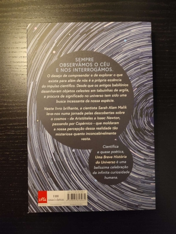 Neste livro brilhante, a cientista Sarah Alam Malik leva-nos numa jornada pelas descobertas sobre o cosmos - de Aristóteles a Isaac Newton, passando por Copérnico - que moldaram a nossa perceção dessa realidade tão misteriosa quanto inconcebivelmente vasta.