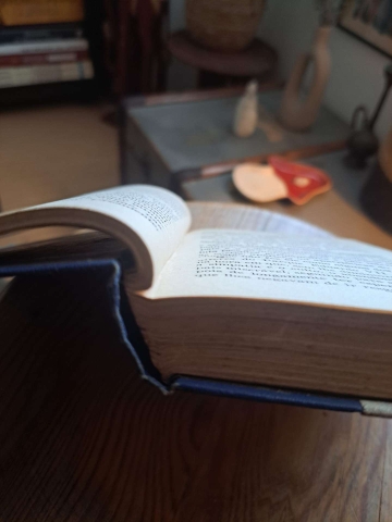 Exemplar com manchas de oxidação nas capas de brochura e lombada quebrada.
