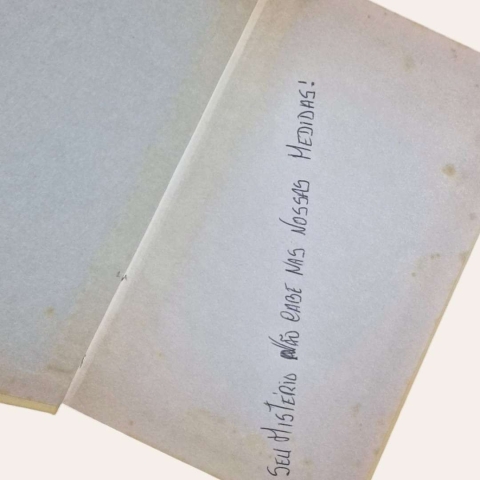Possui uma frase gravada na folha de guarda.