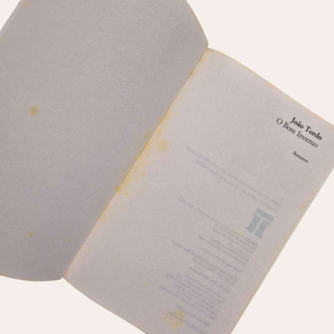 Folhas de guarda possuem pontos de acidez e páginas amarelecidas pelo tempo.