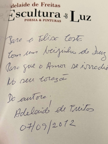 O livro tem uma dedicatória, assinada pela autora (Ver fotos).