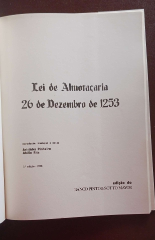 "Lei de Almotaçaria", parte da coleção "Subsídios para a História Económica de Portugal 1", publicado pelo Banco Pinto & Sotto Mayor.