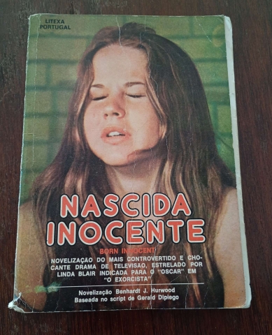 Este é um livro, uma novelização do filme para televisão de 1974, "Nascida Inocente" (Born Innocent). O texto na imagem fornece a seguinte informação essencial: