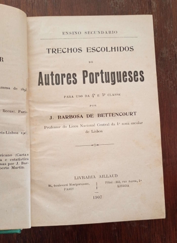 Trechos Escolhidos de Autores Portugueses", de J. Barbosa de Bettencourt, publicado em 1907.